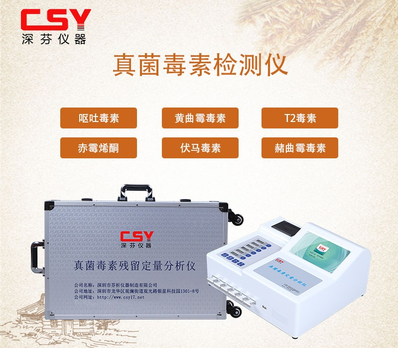 真菌性污染對(duì)人們的危害不容忽視,要加強(qiáng)相應(yīng)的監(jiān)管檢控工作,深芬儀器CSY-YG710真菌毒素快速檢測(cè)儀應(yīng)用競(jìng)爭(zhēng)抑制免疫層析的原理,通過(guò)檢測(cè)線(xiàn)熒光定量卡中的熒光強(qiáng)弱程度,定量分析待檢樣品中真菌毒素殘留含量。真菌毒素快速檢測(cè)儀能夠快速定量檢測(cè)糧食、飼料、谷物、食用油、調(diào)味品等食品中T2毒素、嘔吐毒素、赭曲霉毒素、伏馬毒素、玉米赤霉烯酮,真菌毒素殘留定量分析儀適用于糧油監(jiān)測(cè)中心、糧油飼料生產(chǎn)加工、食品加工貿(mào)易、畜禽養(yǎng)殖戶(hù)自查、工商質(zhì)監(jiān)部門(mén)用于市場(chǎng)快速篩查等。