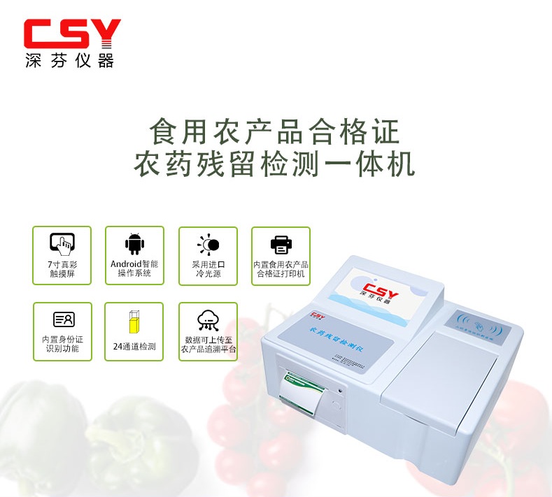 深芬儀器農(nóng)藥殘留檢測(cè)儀全新升級(jí)為您的食品安全保駕護(hù)航,隨著國(guó)家對(duì)食品安全問(wèn)題的監(jiān)管和把控,在農(nóng)業(yè)種植養(yǎng)殖,農(nóng)貿(mào)市場(chǎng)、超市以及市場(chǎng)監(jiān)管等都有必要配備農(nóng)藥殘留檢測(cè)儀用來(lái)檢測(cè)果蔬等農(nóng)產(chǎn)品的農(nóng)藥殘留情況,以保障綠色食品的健康與安全。在日常生活中,食品安全問(wèn)題是百姓民生關(guān)注的大事,其中最引人關(guān)注的就是日常果蔬農(nóng)產(chǎn)品的農(nóng)藥殘留問(wèn)題,若長(zhǎng)期服用農(nóng)藥殘留超標(biāo)的果蔬,很容易引發(fā)各種疾病,甚至影響人們的身體健康和誘發(fā)癌癥。為了幫助人們快速識(shí)別出果蔬當(dāng)中農(nóng)藥殘留超標(biāo)的問(wèn)題食品。深芬儀器特推出了農(nóng)殘檢測(cè)技術(shù)最新研發(fā)成果CSY系列農(nóng)藥殘留檢測(cè)儀。